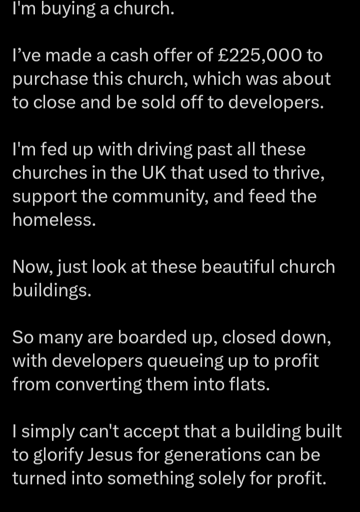I’m fed up with driving past all these churches in the UK that used to thrive, support the community, and feed the homeless.