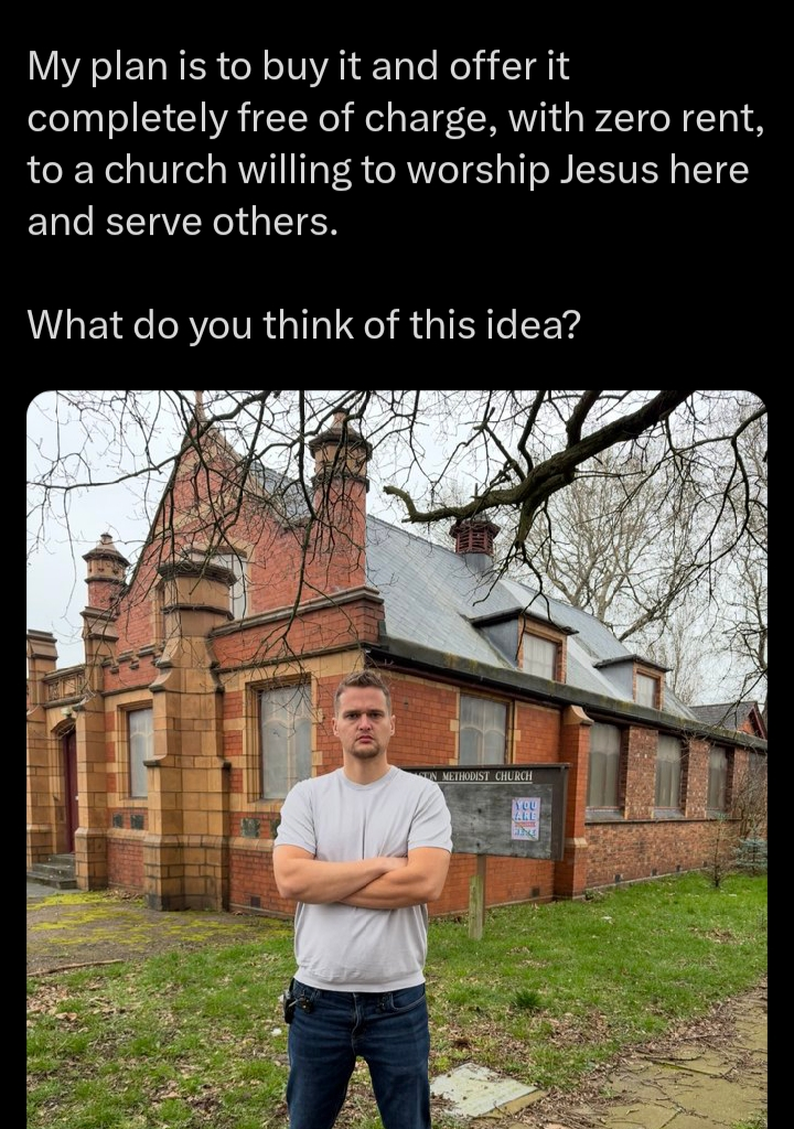 The story was shared on X by Samuel Leeds, who explained that he decided to step in after learning that the Methodist Church building was at risk of being sold to property developers.