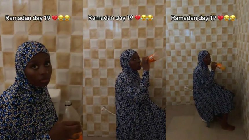 A light-hearted domestic moment has sparked laughter across social media after a man reportedly caught his wife secretly drinking a bottle of 5 Alive inside the toilet during fasting hours.