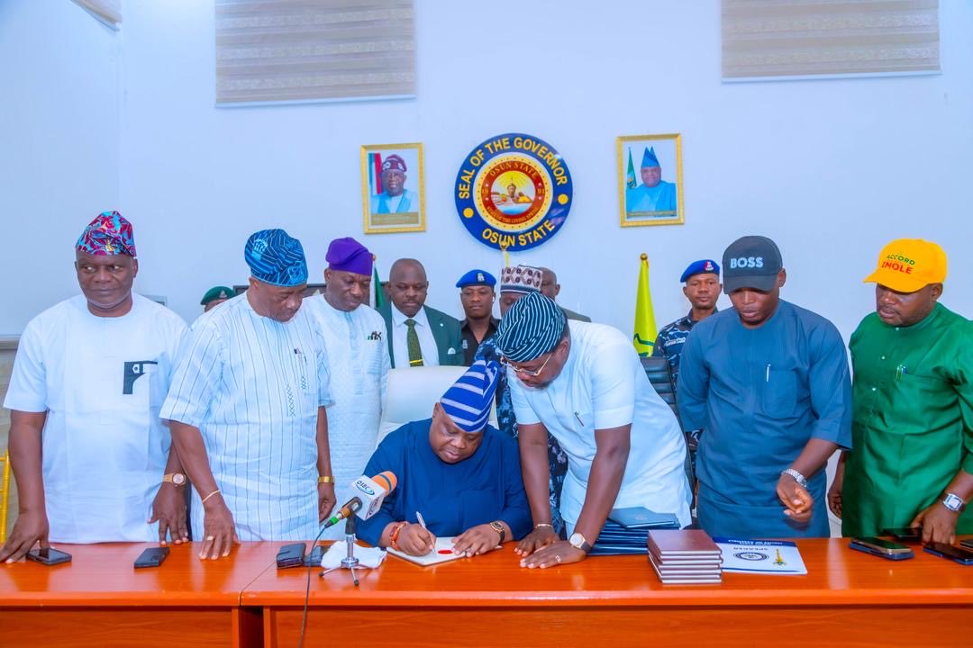 The signing ceremony took place on Monday in Osogbo, with the governor’s deputy, Kola Adewusi, and members of the state executive council in attendance.