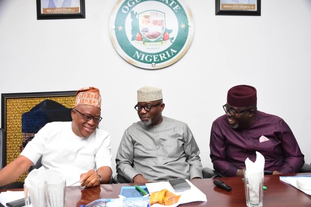 L-R: Special Adviser to the Governor on Media, Mr. Kayode Akinmade, Chief Economic Adviser and Commissioner for Finance, Mr. Dapo Okubadejo, Commissioner for Budget and Planning and Mr. Olaolu Olabimtan, during the year 2024 budget breakdown and media parley in Abeokuta, on Monday.