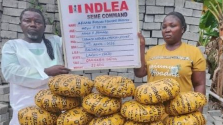 In a statement on Sunday, Femi Babafemi, NDLEA spokesperson, said Hodonu and his wife, Success, 35, were arrested on April 2 at the Gbaji checkpoint along the Seme border.