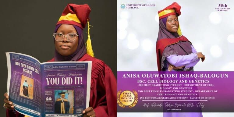 Tributes are pouring in for Anisa Ishaq-Balogun, a brilliant young woman who lived with Sickle Cell Disease and still graduated with a first-class degree in Cell Biology and Genetics from University of Lagos.